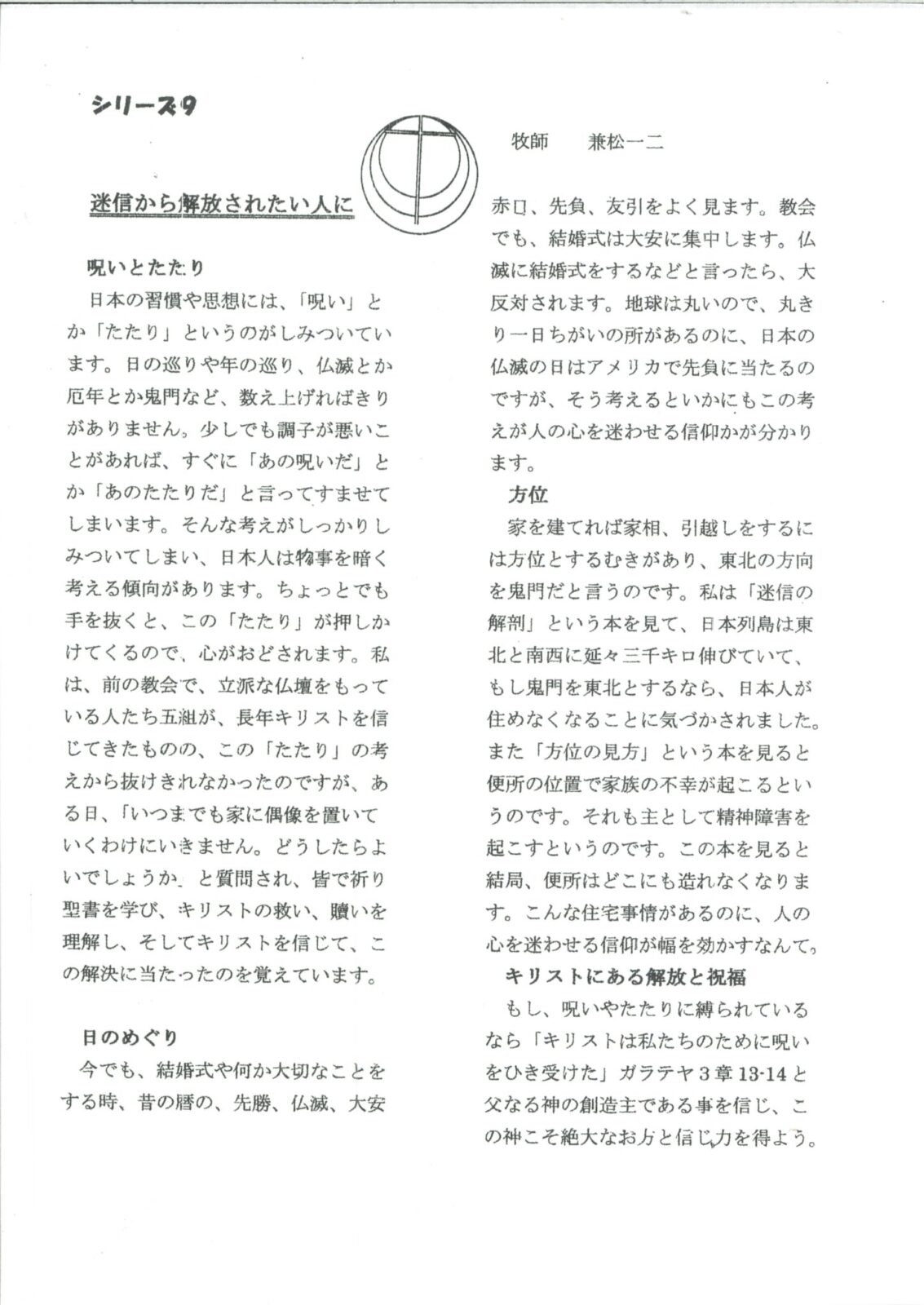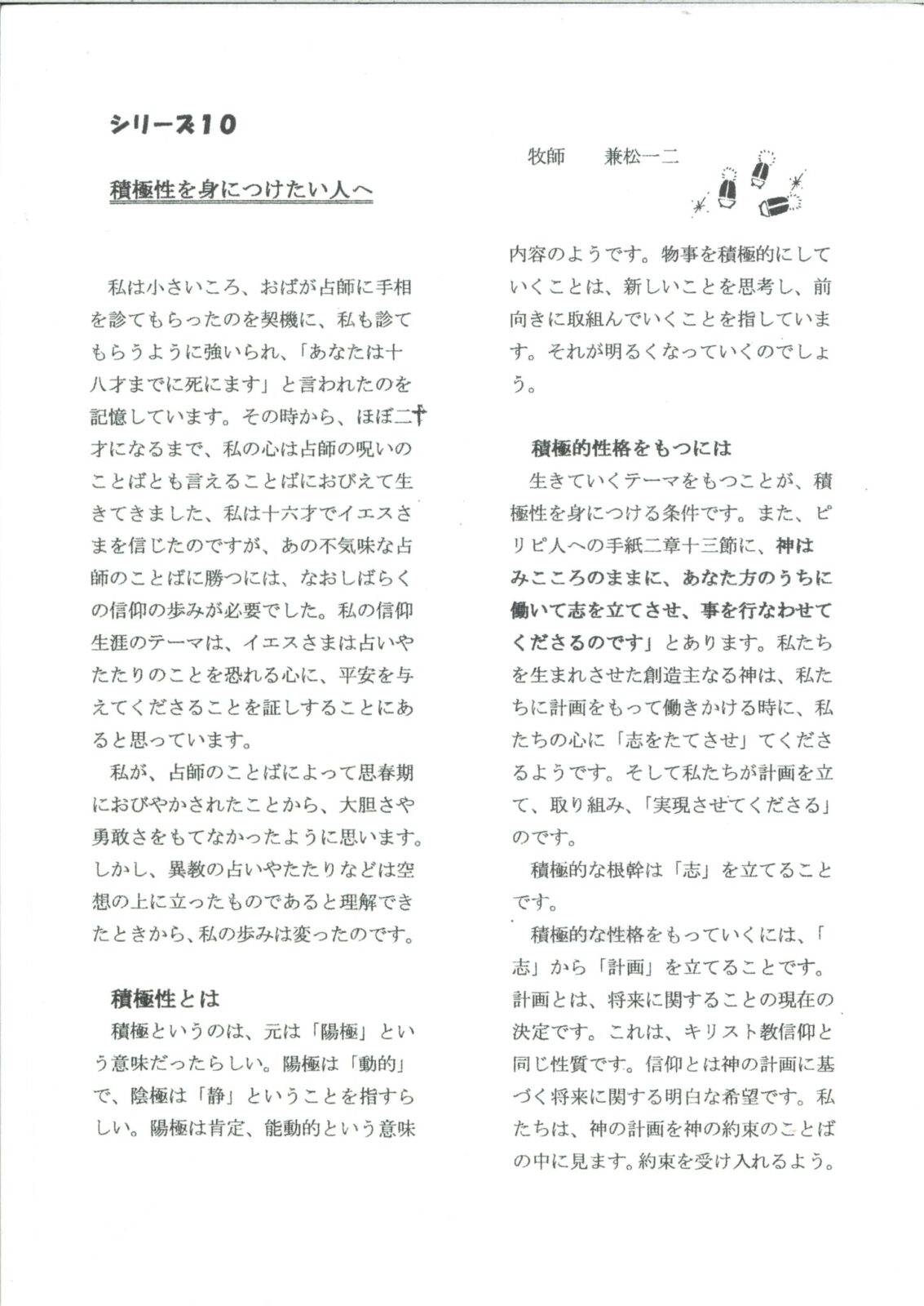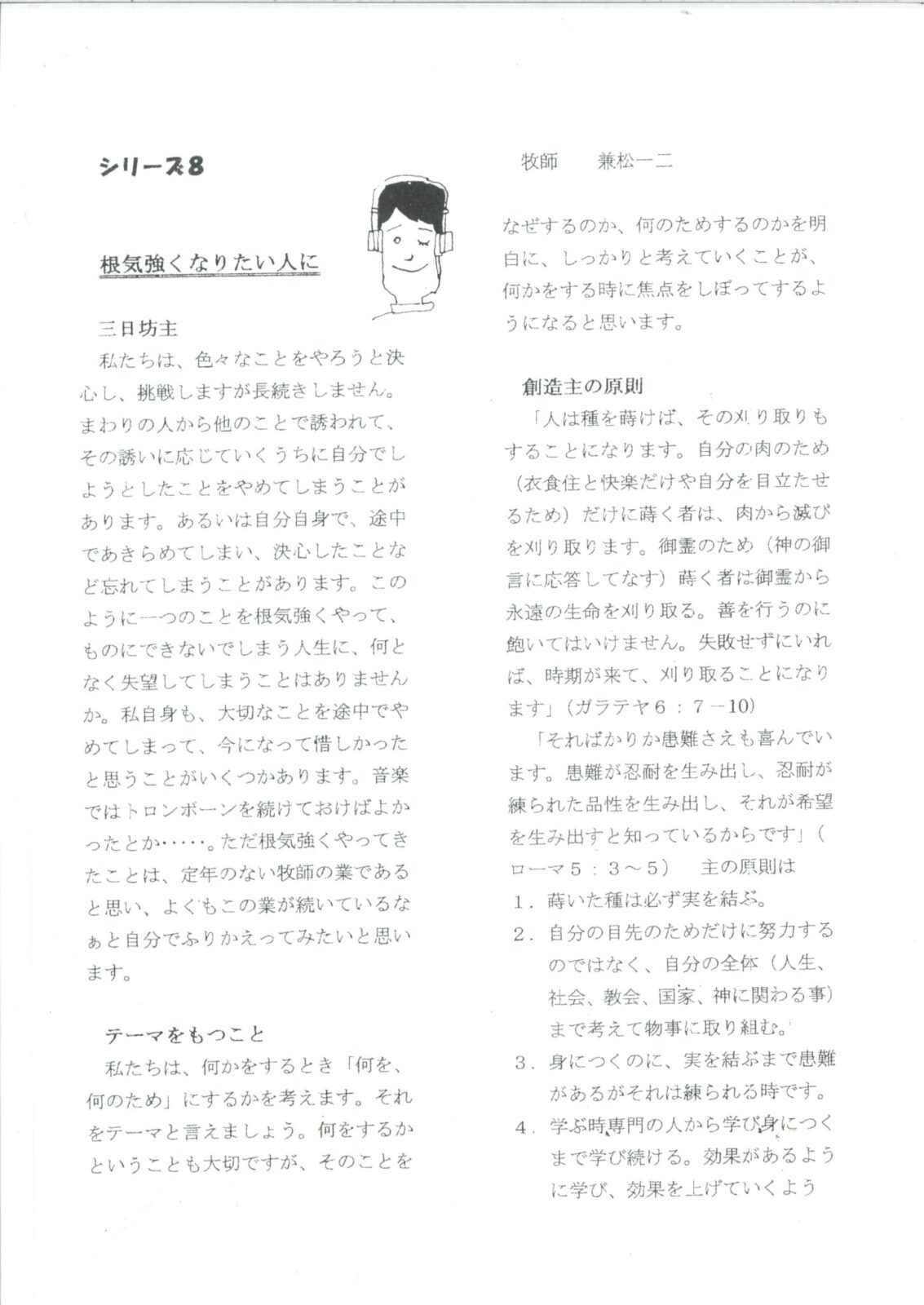 (以下、兼松一二牧師の文章になります。)