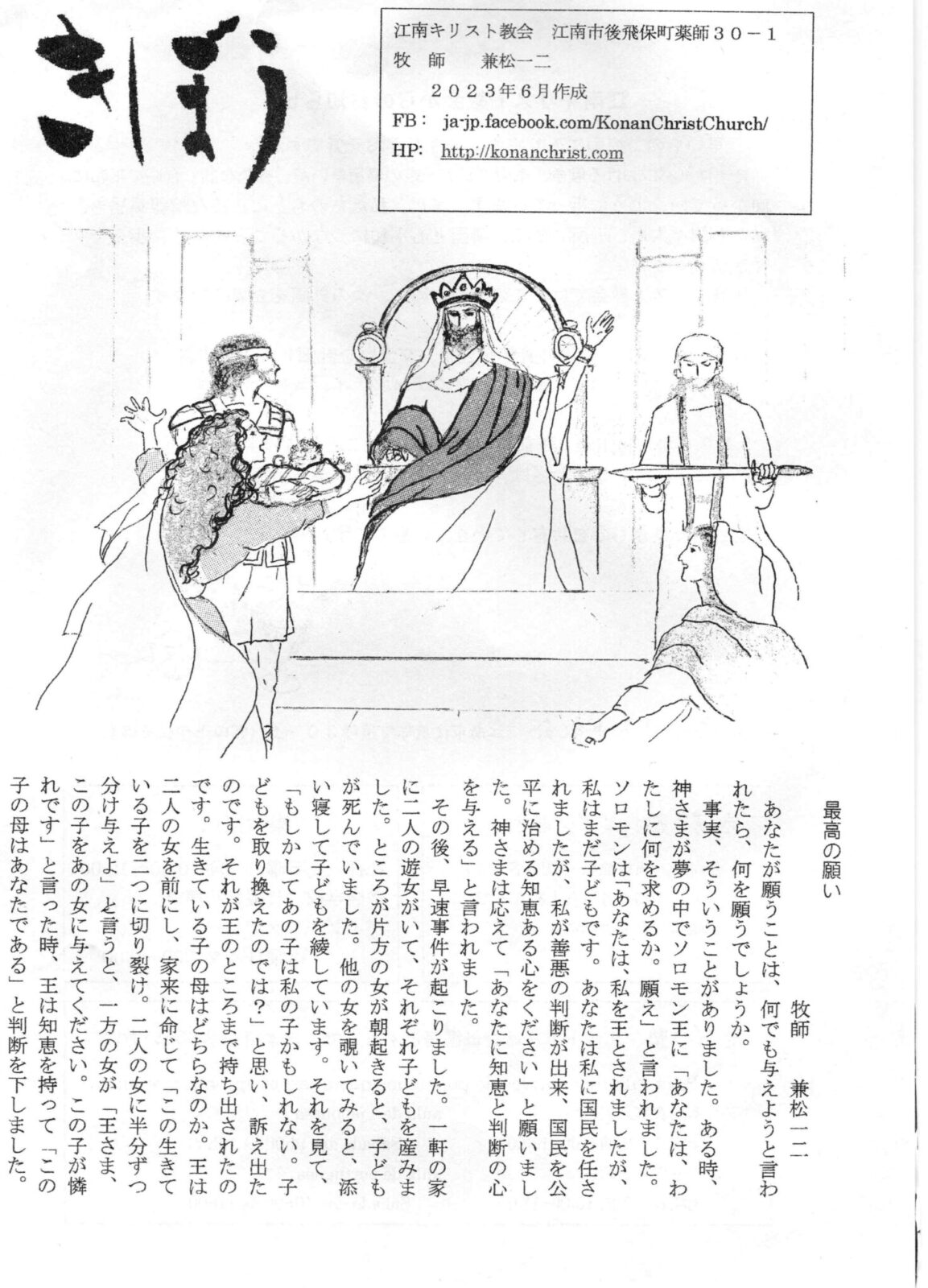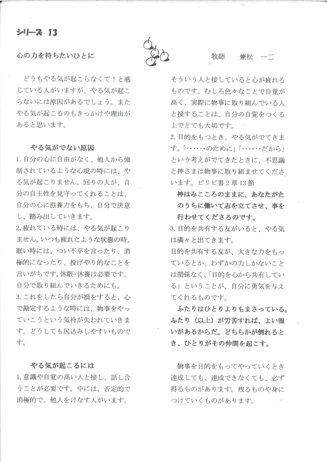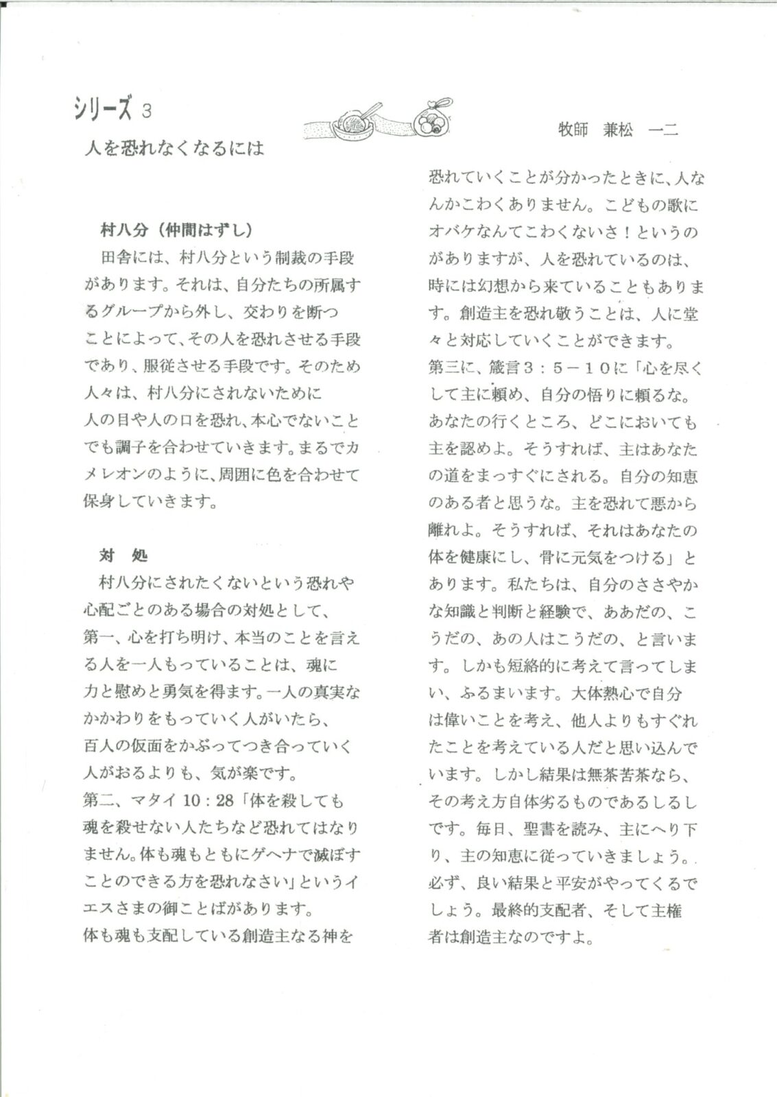 (以下、兼松一二牧師の文章になります。)