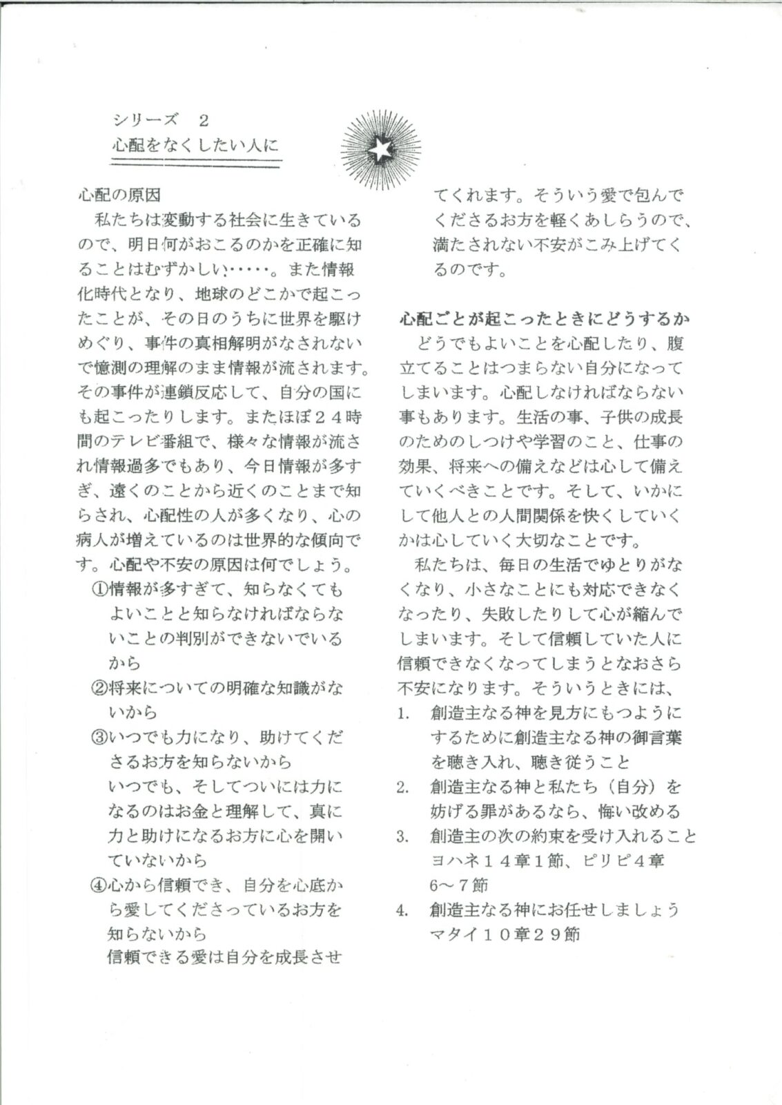 シリーズ2 心配をなくしたい人に